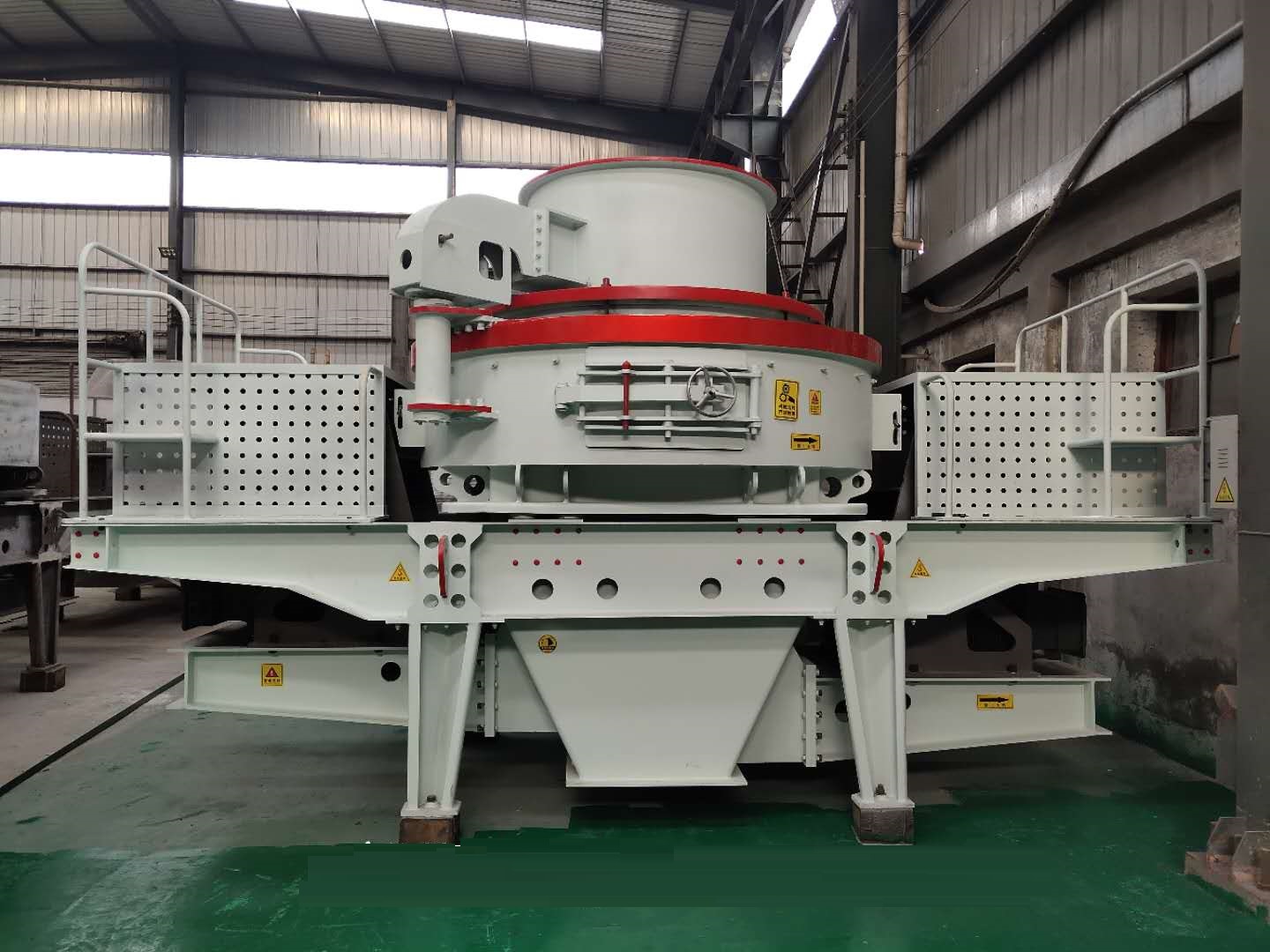 制砂機的主軸上有2個軸承,每一個軸承有一個油嘴。加油時制砂機須停機。加油前,要把油嘴清理干凈。在正常的運轉(zhuǎn)條件下,按照每工作80個小時加一次油。定期加油可以防止塵土污染軸承。在多塵土的條件下,加油的頻率必須加倍(即每40個小時一次),而潤滑油的數(shù)量減半。切記要避免使用不同種類的混合油脂,例如,在任何條件下,鈣基潤滑脂和鋰基潤滑脂絕不能混合在一起。不要用含鉬的潤滑脂,這是被軸承制造廠禁止使用的。 因此正確的對制砂機主軸軸承進行潤滑加油是非常重要的維護措施,我們一定要做好。